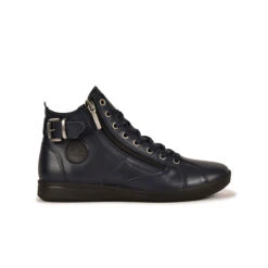 La basket montante PALME est la chaussure parfaite pour vous accompagner toute la saison. Cette basket femme est composée d’un cuir fin et résistant et est montée sur une semelle très légère et flexible. Sa couleur bleu marine est parfaite pour s’accorder facilement avec vos tenues. Petit plus: cette chaussure est munie d’une fermeture éclair sur le côté afin de vous éviter de faire vos lacets. Ce modèle taille petit.
